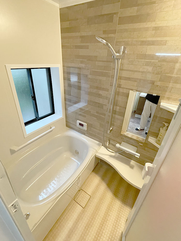 壁と床の色がマッチしてとても良い雰囲気のバスルームになったと思います!
