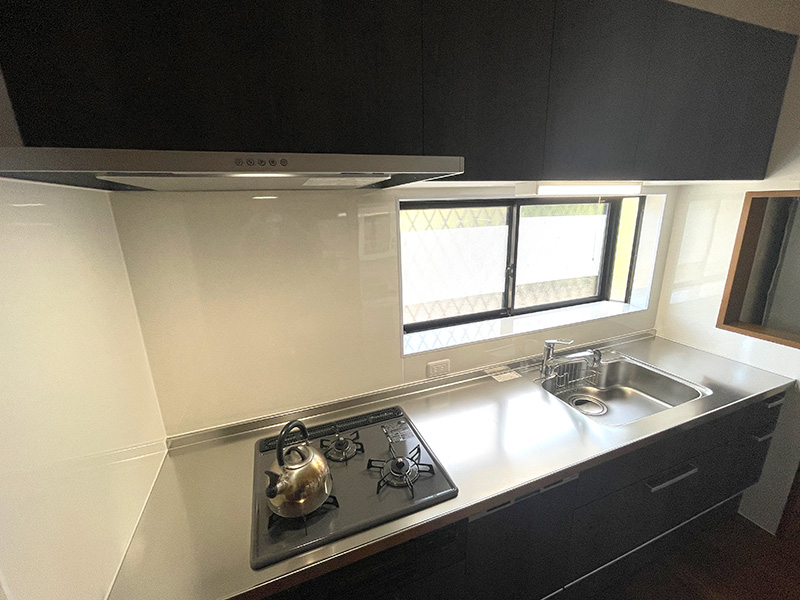 出窓部分までキッチンパネルにて仕上げました。
