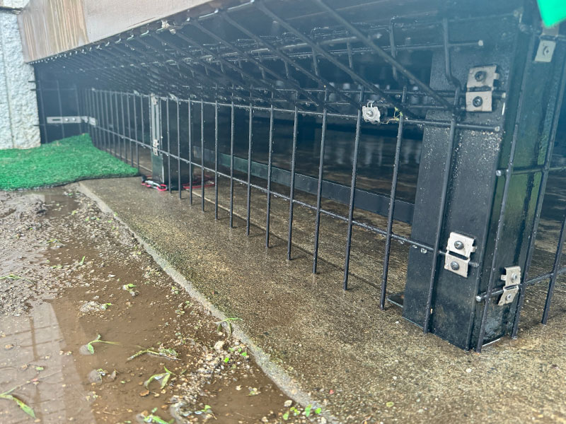 ペットの侵入を防ぐ、ウッドデッキ下のフェンス